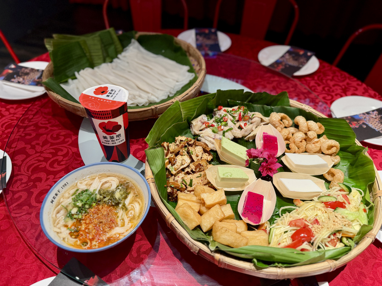 「國旗屋」則是另一處必訪地標,店外掛滿青天白日滿地紅國旗,出自孤軍後裔張老旺爺爺的愛國情懷,如今已傳承至第二代,旗幟之下仍飄著道地的金三角口味米干香氣。