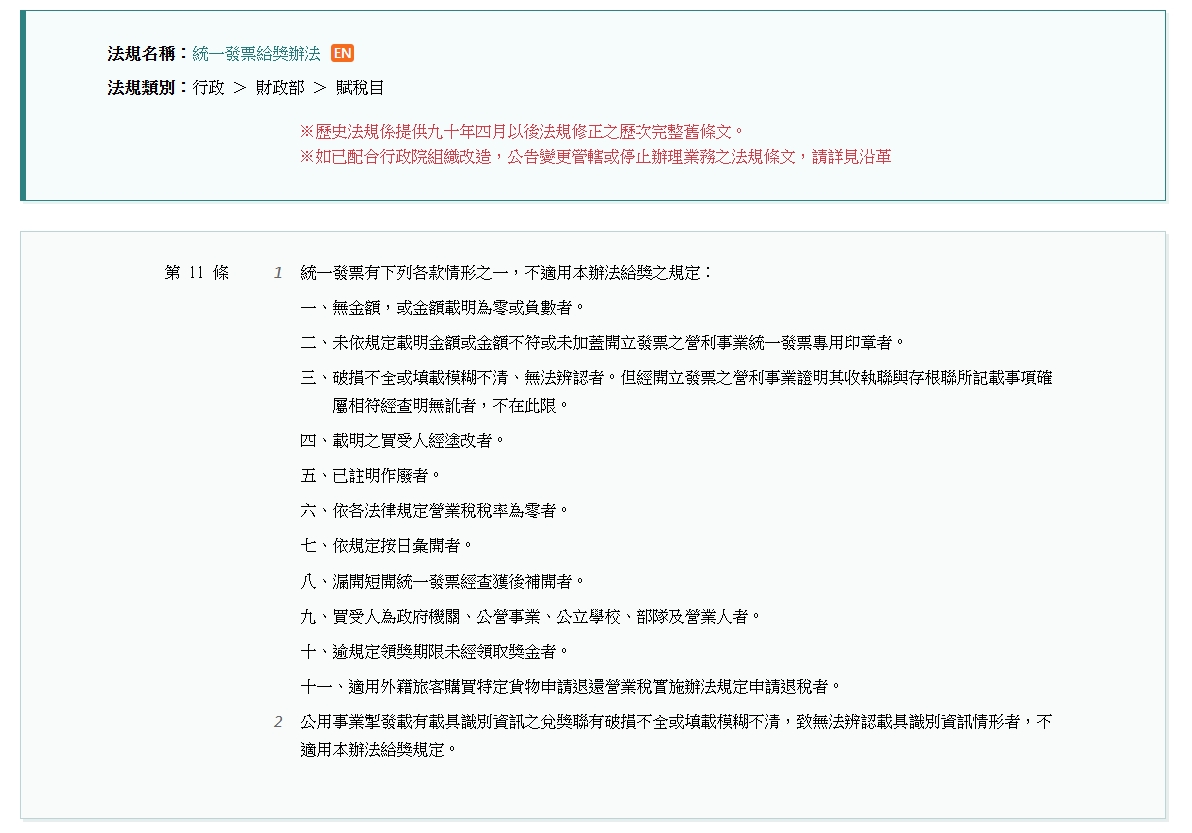 11種情況發票無法領獎