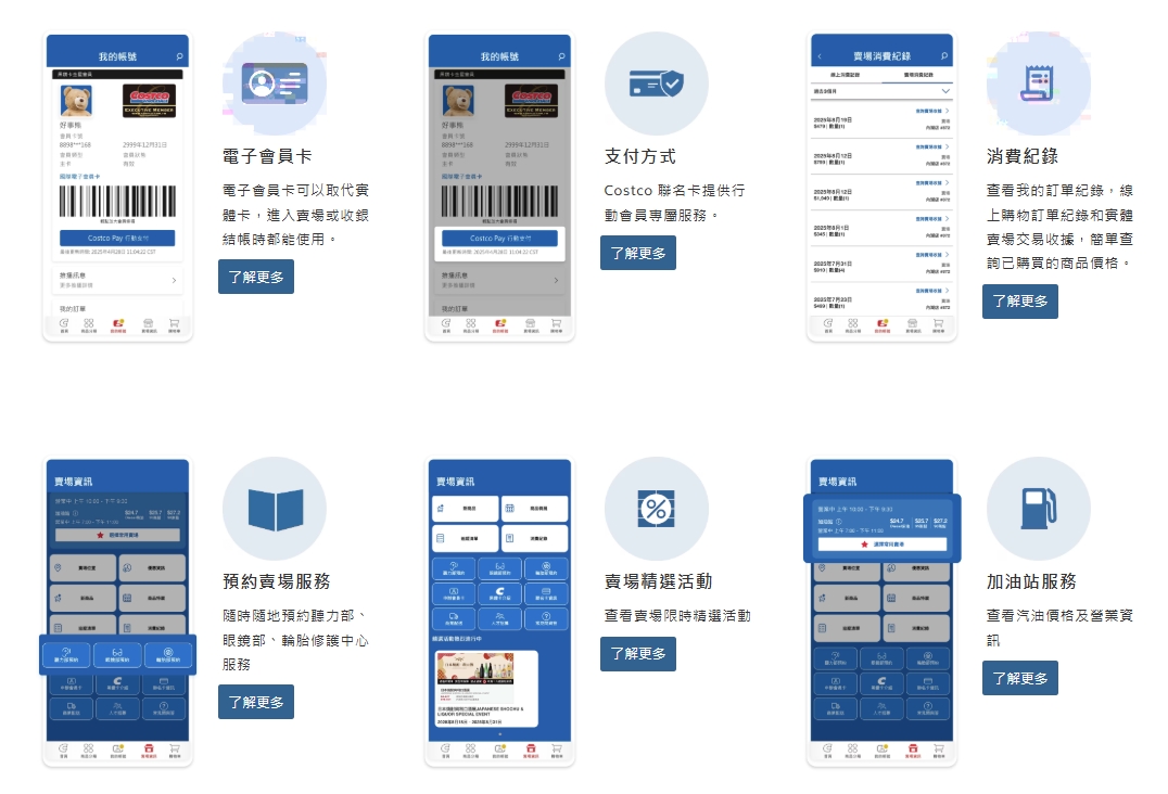 根據好市多官網,App會員獨享功能包括,隨時隨地打開即享線上購物、隨時掌握最新的賣場優惠及活動、輕鬆查看和編輯線上會員帳戶資料、查看黑鑽卡2%回饋金、Costco Pay 綁定聯名信用卡快速結帳、查詢線上訂單、快速查詢電子會員卡、查詢好市多賣場的詳細資訊(營業時間、特展、加油站油價)等,從預約到優惠查詢幾乎一站完成。