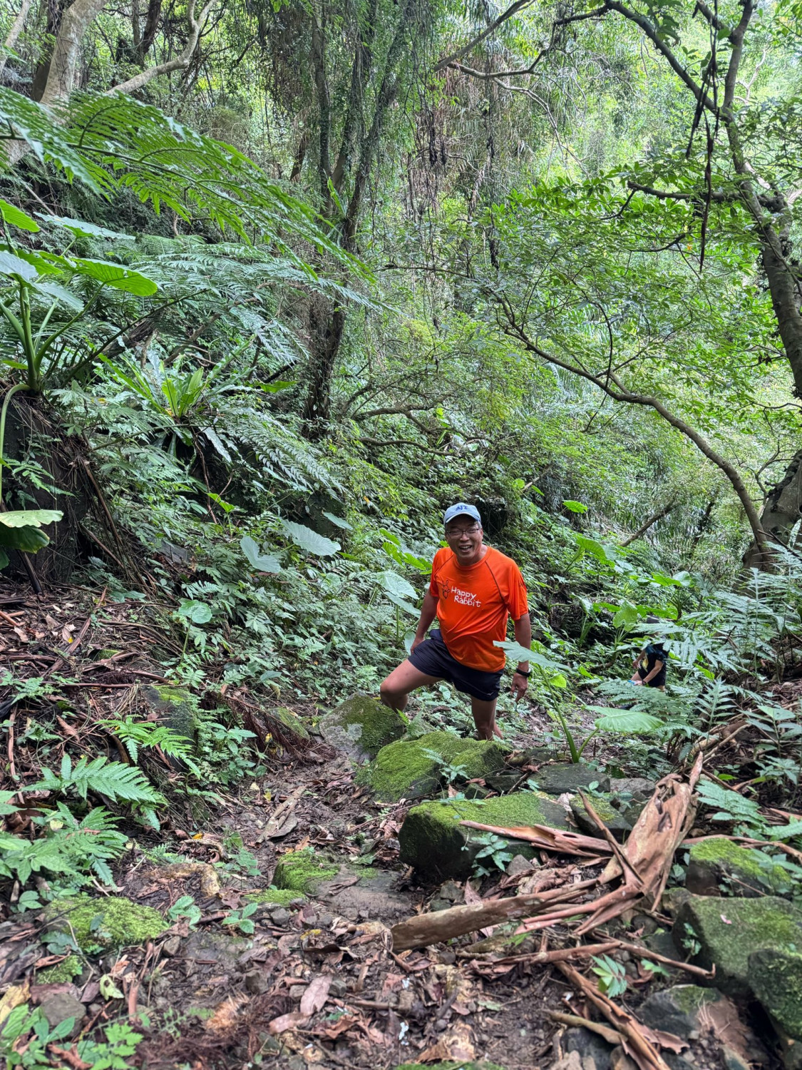 我換好衣服,Bamboo就叫我先走,他說今天9K,爬升800,一聽就知道今天的路很硬!阿斌很早就出發了。這一段是直攻海拔630的金敏子山。每一次捷兔來到插角都是來者不善的硬路,這個金敏子山𨺗峭,我往上爬的時候,很多捷兔的勇咖都回頭,我用禮拜天爬山的心情,放慢腳步往上爬,到了近山頂的腰線,追上阿斌。