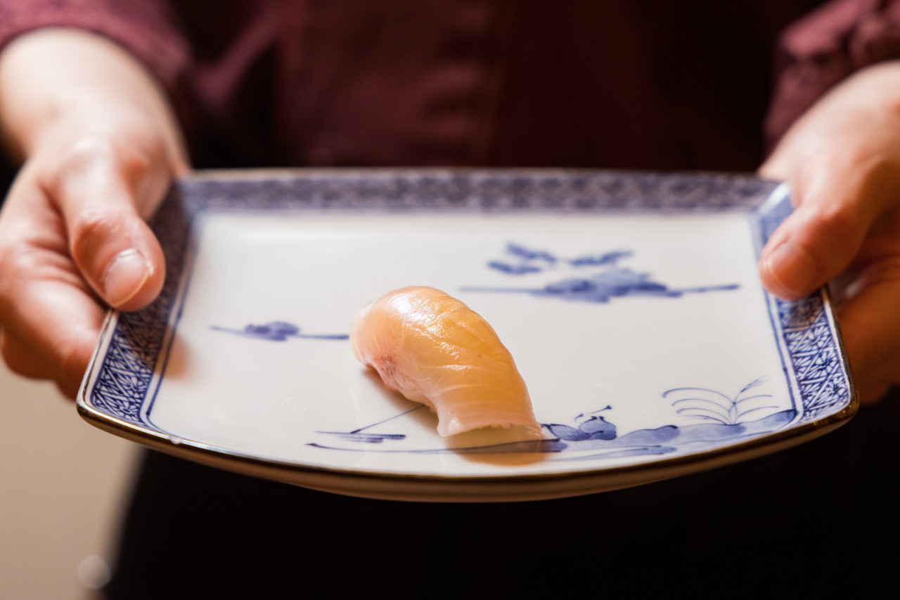 而在鮮魚的處理上,詹明霖也與時俱進,日本漁獲仰賴的是當地即時處理的活締放血,保持鮮魚無腥鮮美的風味,因此當鮮魚進貨後不另做熟成,以避免魚料的耗損,同時,將亮皮魚類的醋漬和鮪魚赤身的醬醃,改為快速的醋洗和涮醬,讓亮皮魚的肉質仍保有水潤,而鮪魚赤身也仍保有鮮甜。