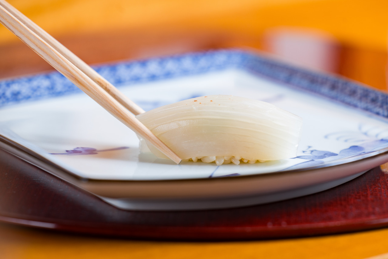 ▲僅以鹽和酸桔調味的槍烏賊握,鮮美又清新。