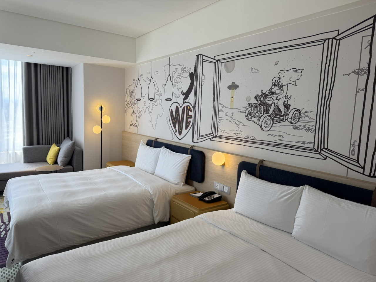 Two Tails Hotel的前身其實是成旅晶贊飯店,2024年底啟動翻修計畫。包含迎賓廳、酒吧、房間全數打掉重練,從原先的典雅風格,搖身變成新潮、充滿活力的氛圍。