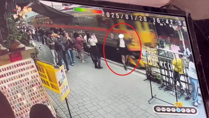 當地店家的監視器拍下她遭火車撞擊過程,女子先在店家前空地自拍,接著把手機交給男性友人幫她拍照時,發現列車即將通過,要友人改站在列車從她身後駛來的的位置。女子張開雙臂時,列車駛過她的身旁,並撞上她的左手,導致她重心不穩掉落軌道區。