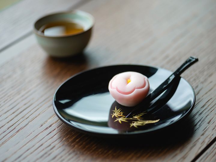 ▲辦理入住過程中,服務人員提供蒔繪漆器盛裝和菓子及日本番茶,在貴賓在唯美氛圍中揭開旅程序幕