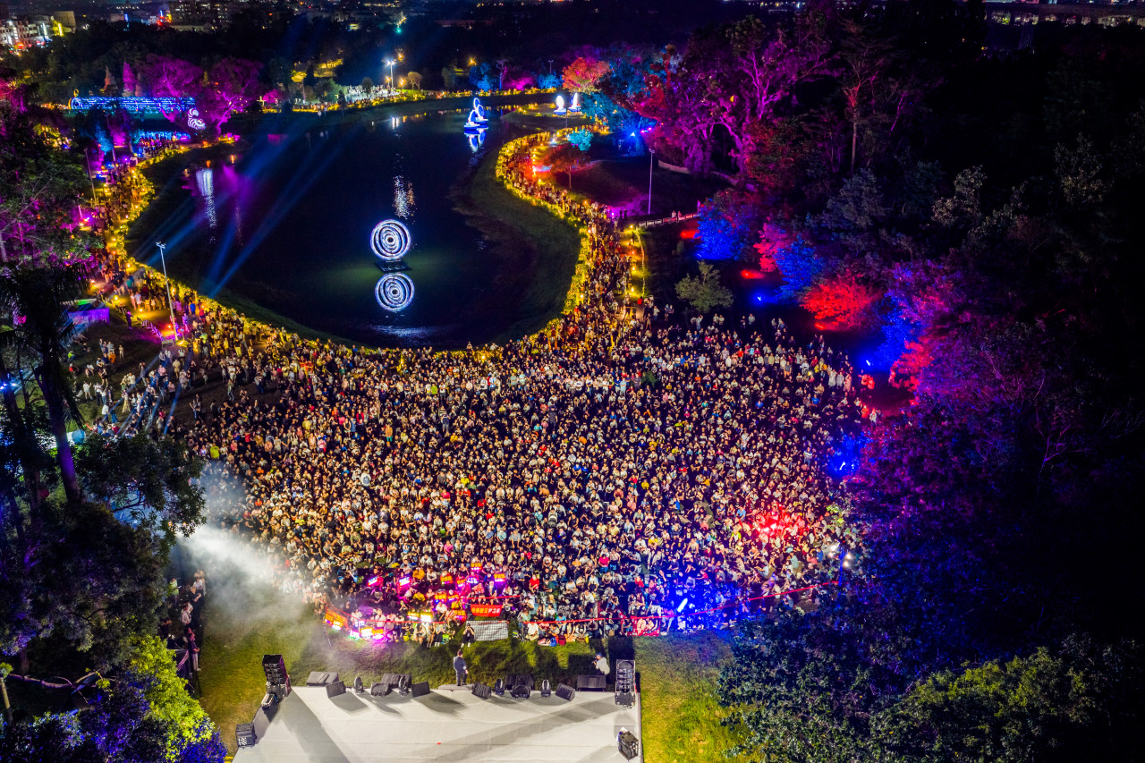 「2025嘉義市光織影舞—光影藝術展」自10月4日(星期六)登場以來掀起全台熱潮,截至雙十連假,參觀人次已突破77萬。活動展期至10月19日(星期日)止,還沒有來參觀的人,可要把握最後展出期間,一同走進北香湖的光影夢境。