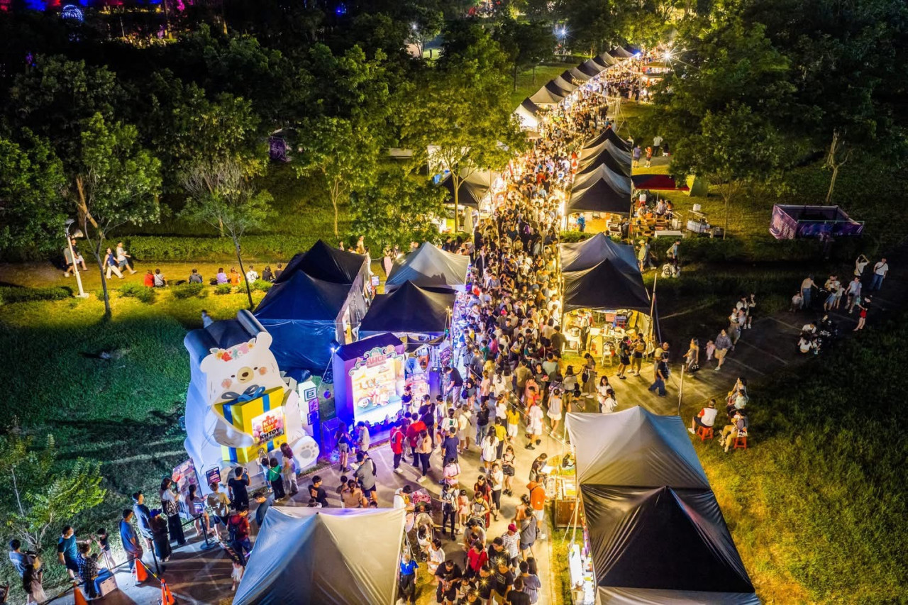每日下午4點開張的「奇幻市集」,則匯集藝術手作、特色餐飲與創意裝置,遊客可以在這裡尋寶、品嚐美食,將光影之外的感官體驗一併打包。(嘉義市政府提供)