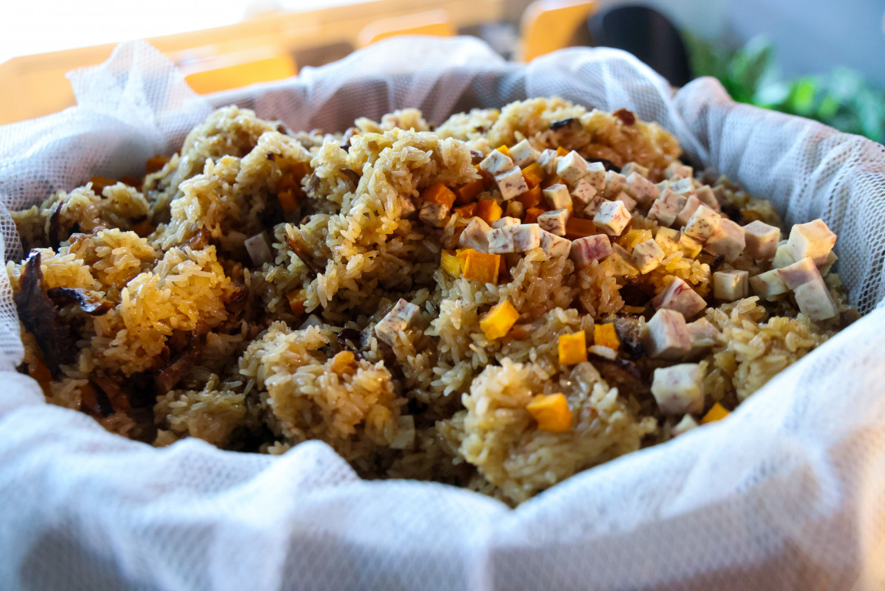 融合金山地瓜與跳石芋頭的創新油飯,讓傳統庶民美食展現新風貌,也象徵傳承與創新的交融。(圖/今周刊攝影)