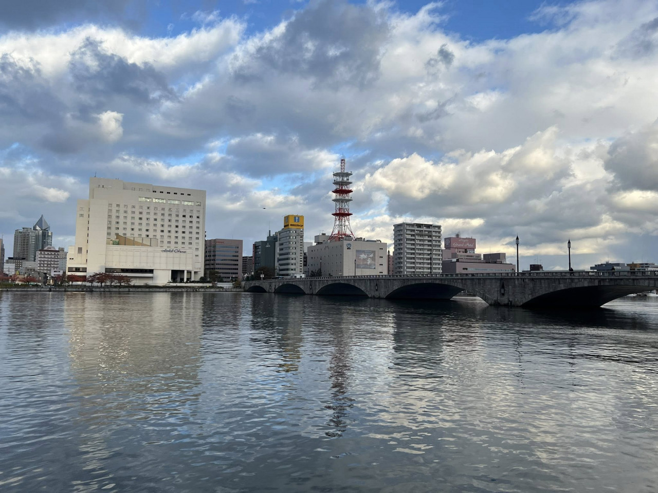 來到新潟,我們選擇了將近半世紀的大倉酒店入住,這個飯店從1978年開始營運,迄今已經47年,算是新潟縣的地標建築。這個飯店走出來還有一座很古老的萬代橋,這座石橋在1929年完成,跨越信濃川,這是日本第三大河,流出日本海,上游的清津峽可以媲美花蓮的太魯閣。