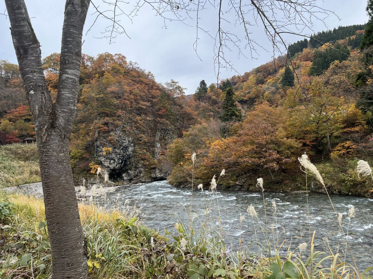 在日本,他們叫紅葉,兩年前,我在彌彥山看到整片染紅的山谷,留下深刻印象。這次再來新潟,我對深秋的清津峽谷留下深刻印象。這個清津峽,論雄偉,比不上花蓮的太魯閣峽谷,但多了楓紅,溪流的點綴,增添了細緻與美感。