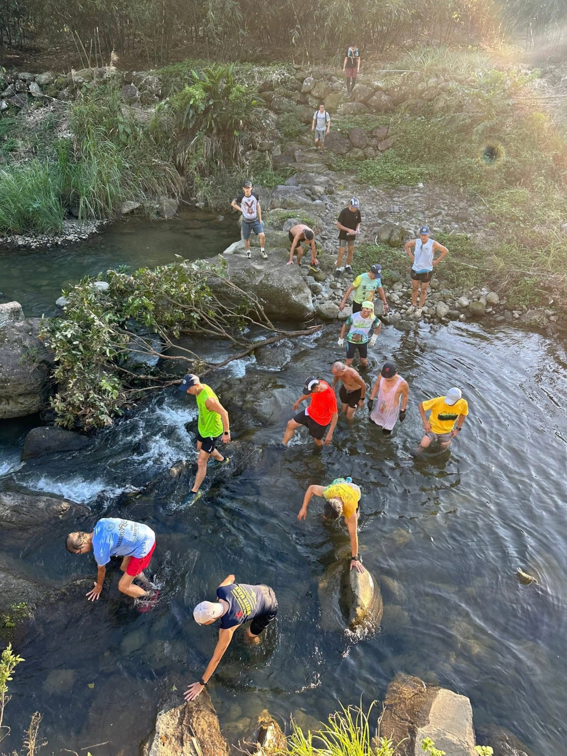 沒想到Nick來一個過河的橋段,我們在河的對面已經看到停在馬路的車,這回必須蹽溪過河,這條河從來沒有人走過,河底很滑,我是一步一腳印才踩過河。Nick把大家放在河裡把身體洗乾淨,順便把完一下,完成今天的Ending!