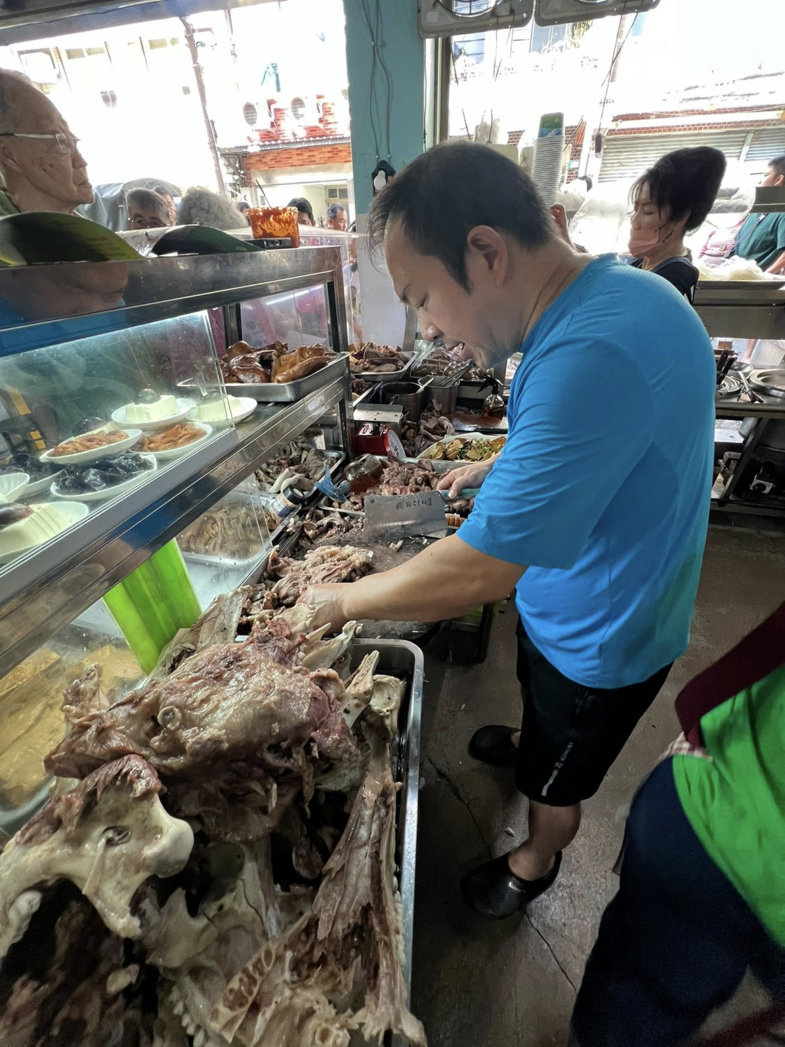 我更偏好豬頭肉,其一是老闆親自切肉,他從剛剛烹煮出來的豬頭臉頰抽出一塊肉遞給我,確實是人間美味,豬頭肉老闆和台南阿裕的切肉都讓我感動。