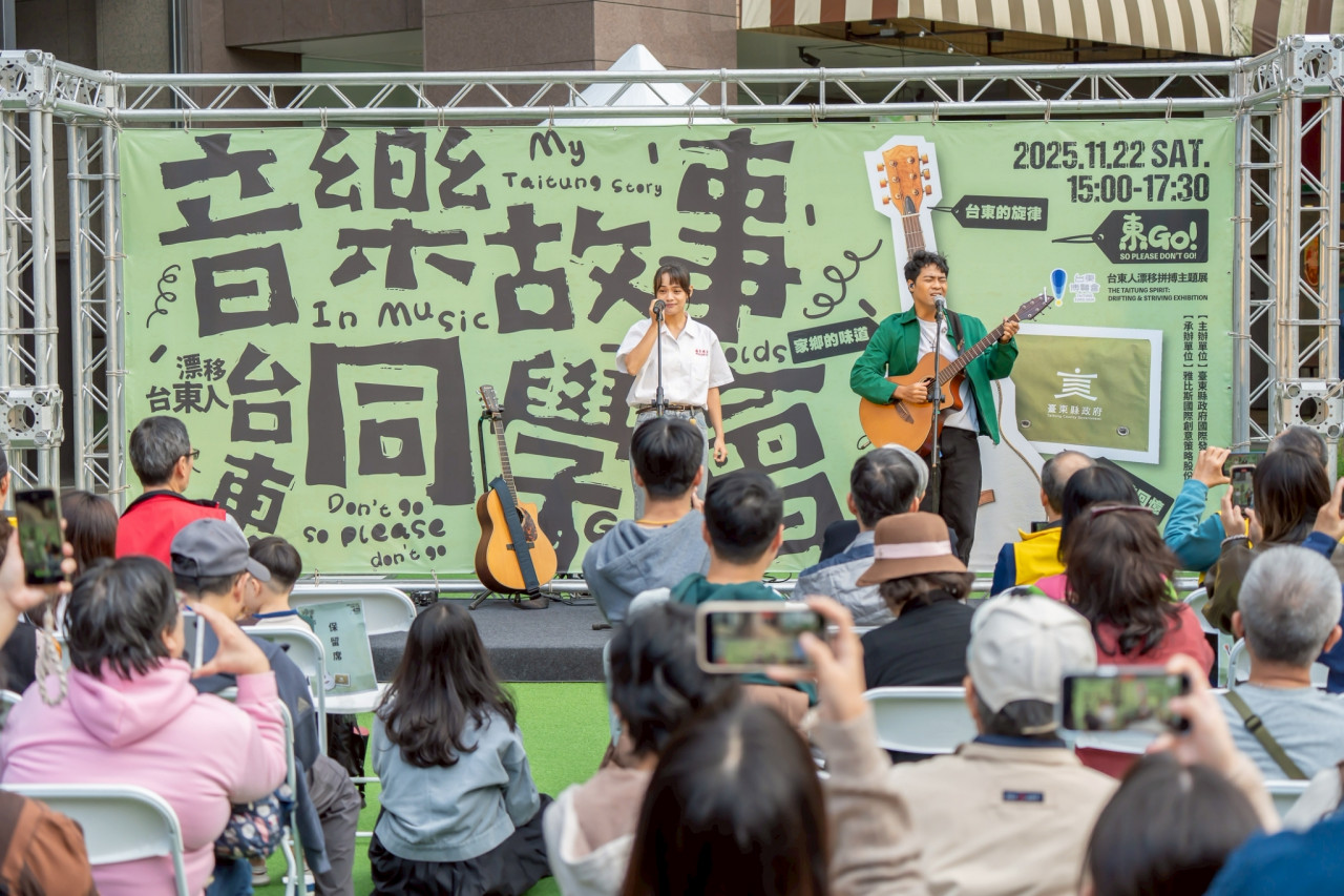 11月在台北爵士廣場庭園舉辦「漂移台東人‧音樂故事同學會」,邀請旅外的台東遊子與熱愛台東的朋友們,一起分享對故鄉的熱愛和想念,也為「2026台東博覽會」提前暖身。