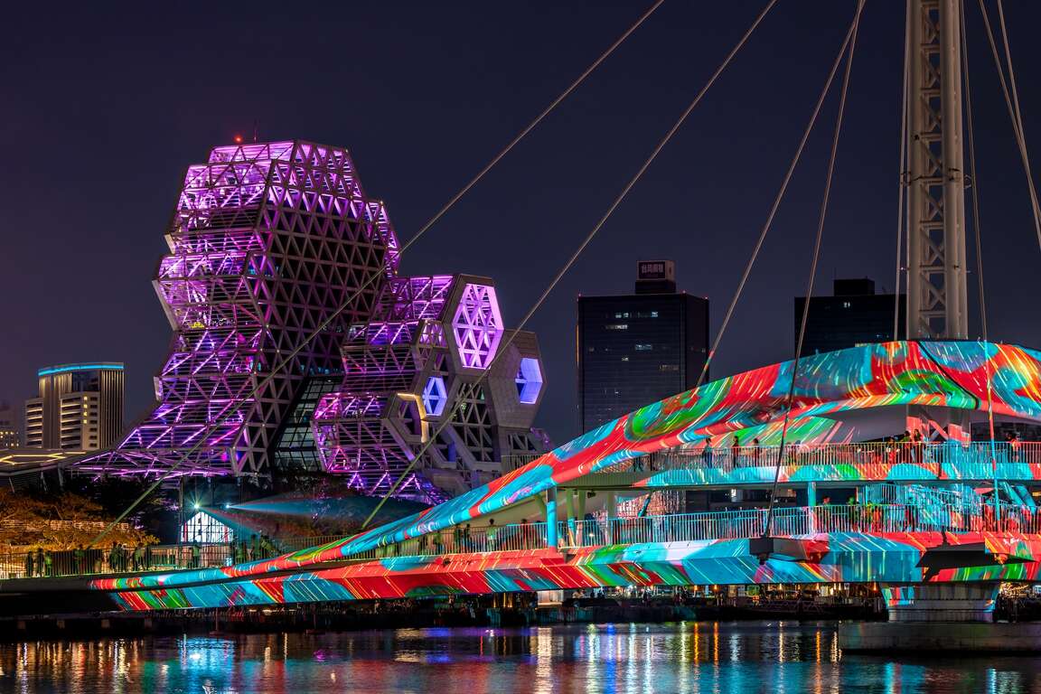 大港橋連接棧貳庫和駁二藝術特區,可以飽覽港邊景致,每日下午3點及周五、周六、周日晚上7點會進行開合旋轉秀表演,入夜後有夜間燈光秀,是高雄熱門的觀光景點。