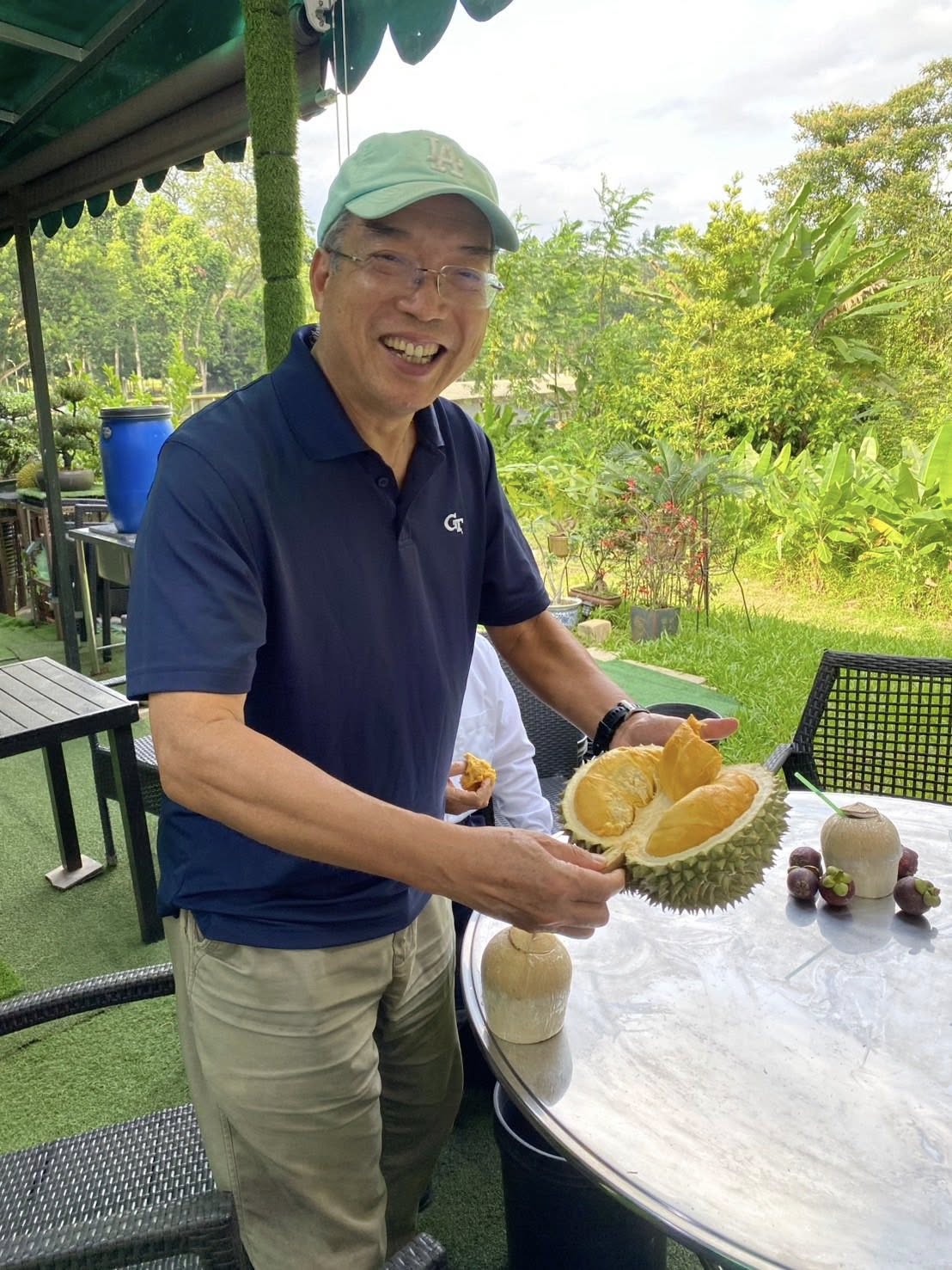在台灣,因為榴槤糖份高,通常我們都淺嚐即止,許董可以持續吃榴槤。金仁寶集團的廠房遍佈東南亞,我看許董找榴槤的功力堪稱是專家中的專家!我第一次看到這麼懂榴槤的人。