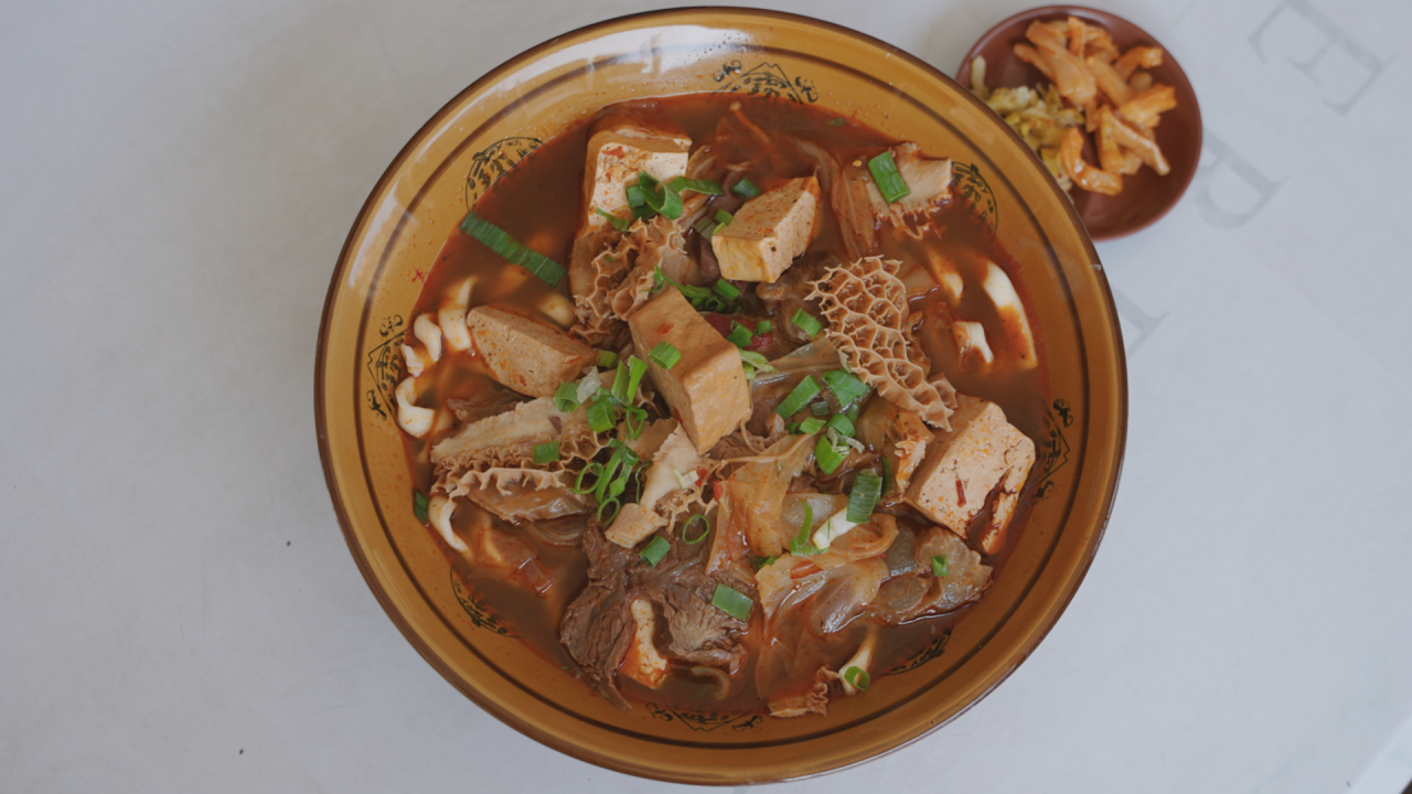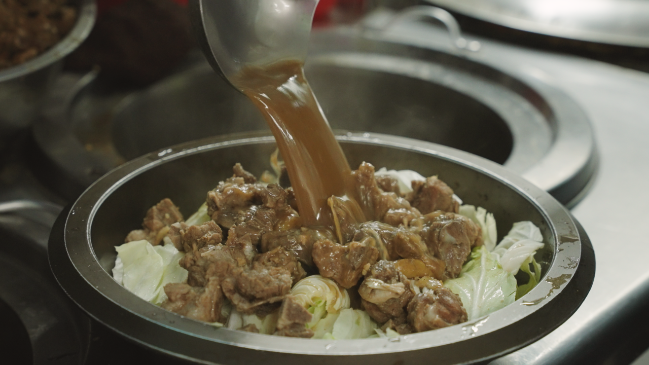再勺入那鍋靈魂湯頭,另外雋永的中藥湯頭,讓你入口的排骨與喝湯有兩種享受。 之後再放入蔬菜以及各式鮮味料一同熬煮,排骨在熱騰騰的湯水中釋放出迷人的油脂香氣,與蔬菜的清甜融合出一種深邃且多層次的口感,一口喝下去瞬間驅散了冬夜的寒冷,這種在老店裡沸騰的煙火氣,是一種不需要任何多餘說明就能心領神會的溫暖。
