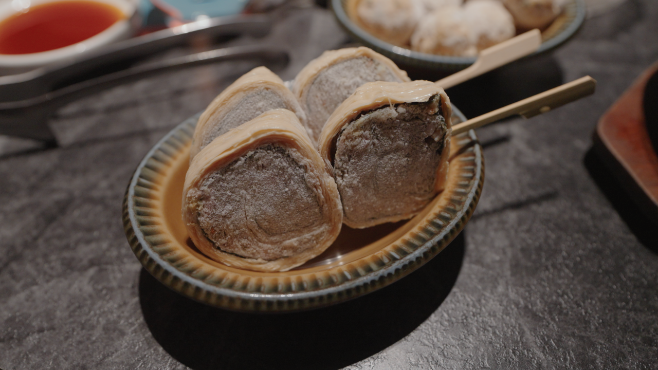 手路菜溫肚卷必點,豆皮捲著豬肉餡、青江菜,外藏一片海苔。