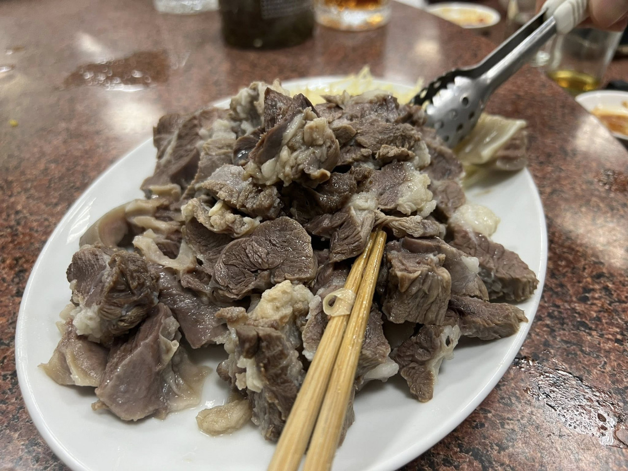 老闆娘看到我就說終有一天等到你,她說我一定會來!我告訴她說我來過兩次都沒有位子,只能去吃隔壁的勇伯。老闆娘和她的兒子都是今周刊的訂戶。這個時候也正式開動,除了溫體羊肉,我喜歡羊大骨,最令人驚艷的是羊三層肉。