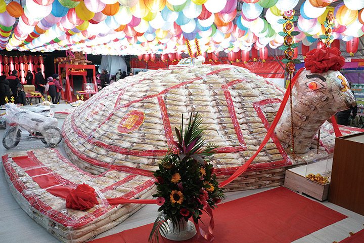 值得一提的是,往年活動期間,西嶼最尾端的漁業重鎮外垵村,也會號召所有漁船回港攜手點亮漁火慶元宵,「外垵漁火」儀式成為民眾口耳相傳最浪漫的繞境路線;龍門觀音宮則有全臺最大、四.七萬斤的「巨型米龜」,吸引攝影與宗教文史愛好者前來朝聖;各廟宇的「龜王之爭」 氣勢凌人,看著山水上帝廟重達四三○兩的「金鑽金靈龜」,有遊客笑稱:「澎湖人過年是為了休息,元宵才是認真玩的時刻。」往年部分商家甚至會在元宵節連休,方便老闆和員工前往賞龜、祈福、跑廟。