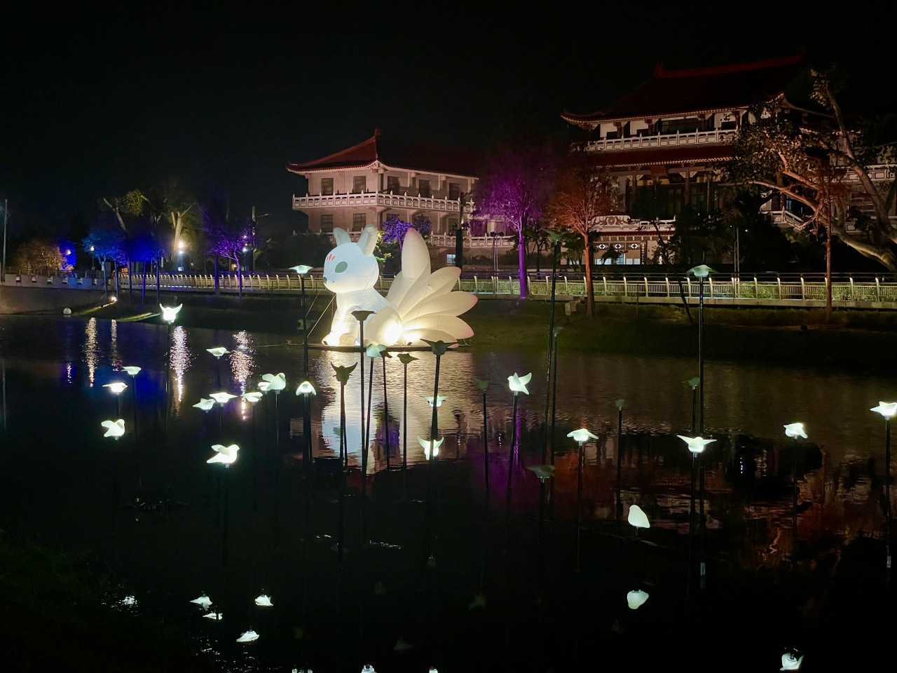 此外,「第三屆新營波光節」也在新營天鵝湖公園盛大開幕,今年以「光之夢」為策展主題,首度攜手臺灣新生代原創插畫 IP「光兔DILO」與「鼠尼SUNI」,將天鵝湖轉化為夢幻場域,即日起至3月8日,下午五點半至晚上十點點燈見客。