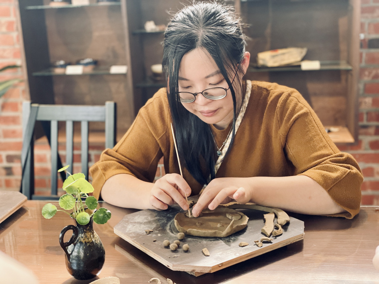 ▲到陶作坊可自己親手製作陶盤,帶回家做紀念。(蔡佳玲攝影)
