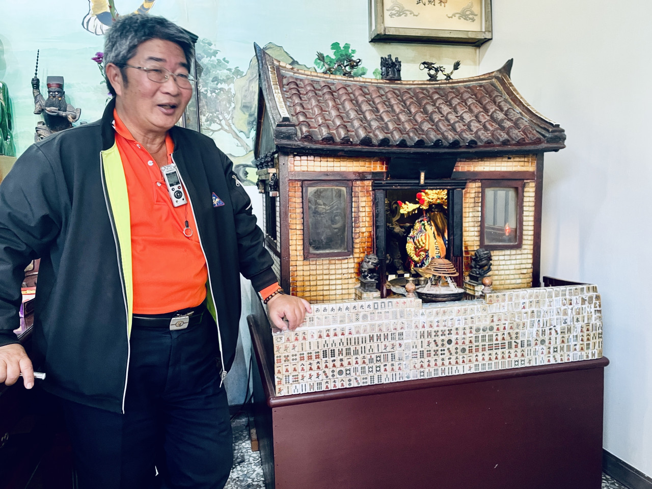 ▲以1680顆麻將砌成的麻將廟,供奉有武財神趙公明,春節到大眾廟拜拜可一併求財。(蔡佳玲攝影)