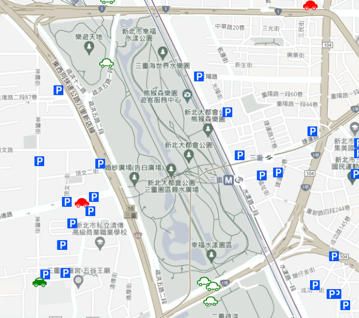 新北大都會公園周邊外圍付費停車場或停車格,相關訊息查詢上新北市公共停車場查詢網頁