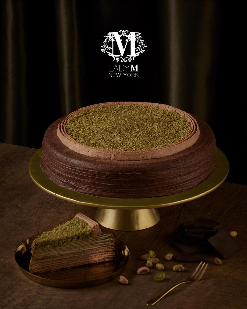LADY M宣布「杜拜巧克力千層」9吋暫停販售,目前僅開放外帶切片款。(LADY M提供/中時新聞網 朱世凱台北傳真)