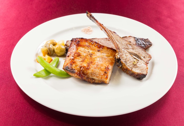 ▲豪華三拼: 經典牛小排+烤松阪豬+嫩烤羊肩,豪邁的肉食盛宴。