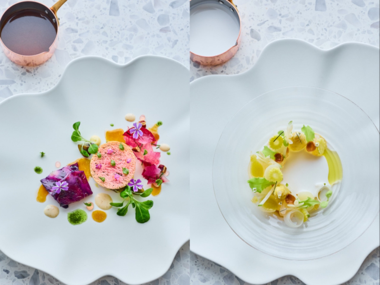 A餐廳今年推出的春季菜單,以《百蔬其芳 一路生花》(Foundations in Bloom)為主題,融合法式經典技藝與現代創作,回歸法國料理的核心,以傳承數世紀的「五大母醬」為靈魂,用一抹醬料帶你感受春日餐桌的迷人風采。