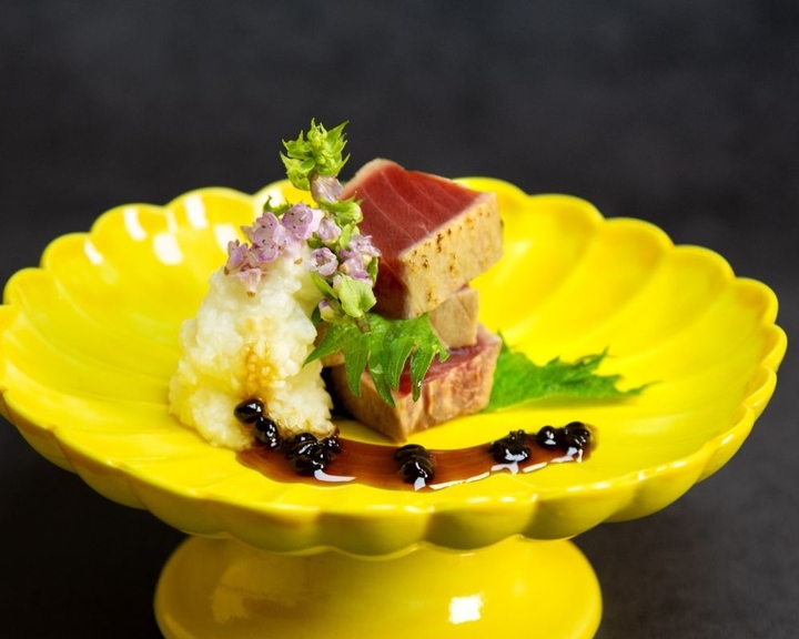 ▲「辰割烹」的本鮪魚腹肉,透過輕炙手法精準引出豐潤油脂,佐以細滑山藥泥與山椒醬油,勾勒出濃淡流轉的迷人層次。