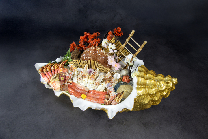▲「懷石SHABU SHABU」御海盛宴精選澎湖現流鮮魚、小卷及生蠔等頂級海鮮,將極致的純粹鮮甜化作波瀾壯闊的奢華景致。