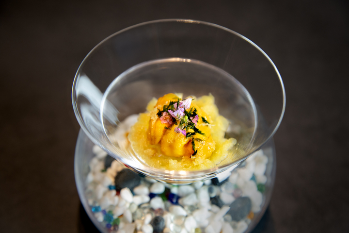 ▲「辰壽司」的軟絲海膽,結合海膽的濃郁鮮甜,和天婦羅麵衣構築酥脆層次,與柔潤質地形成對比。