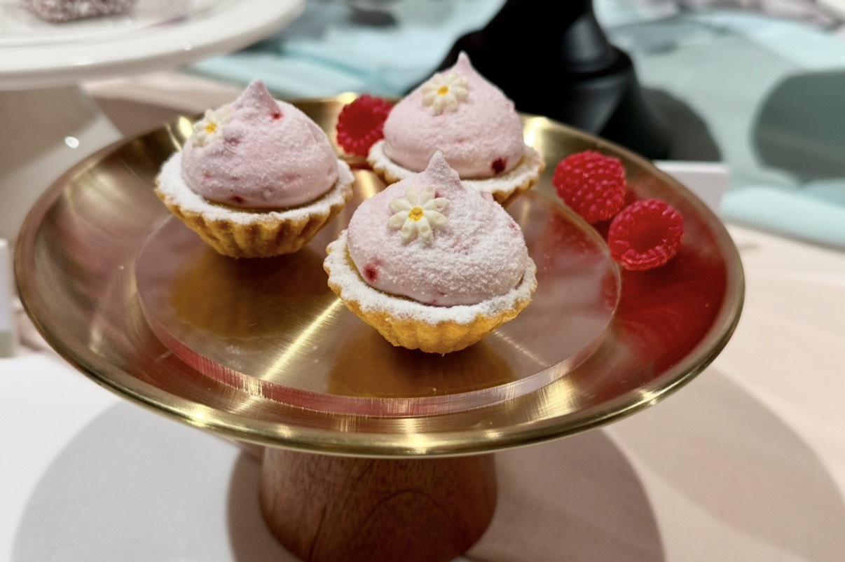 4. 「露雫 (ㄋㄚˇ)」(百香覆盆莓塔),是春末初夏的雨露氣息,以酸香明亮的百香果奶油餡,搭配輕盈柔滑的覆盆莓蛋白霜,包覆於酥脆塔殼之中,綻放春日的輕盈與甜蜜。