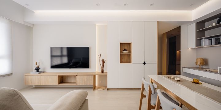 王家宏擅長在動態與靜態中找到平衡,利用空間動線與折門設計,為每個區域提供靈活的使用彈性。同時,他重視空間的比例分割與色彩協調,特別偏好簡約亮色系設計,以3種主色調維持空間的平穩感。