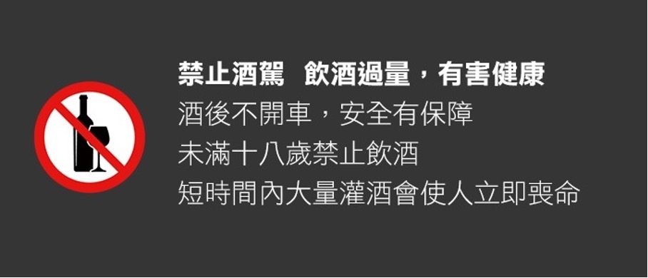 警語:飲酒過量,有害健康;酒後不開車,安全有保障。