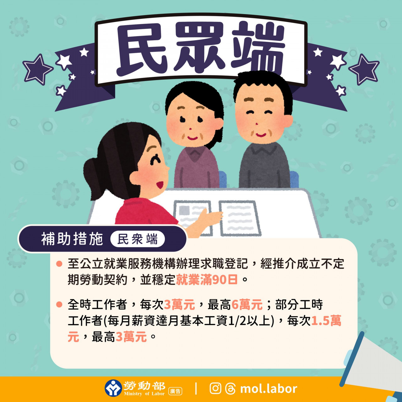 - 全時工作者(達每月基本工資數額):每次新臺幣3萬元。