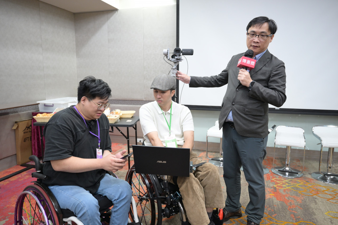 ▲ 脊髓損傷基金會蕭英成執行長現場說明傷友如何使用輪椅加裝攝影機,克服肢體障礙,開創多元職種發展。圖/主辦單位提供