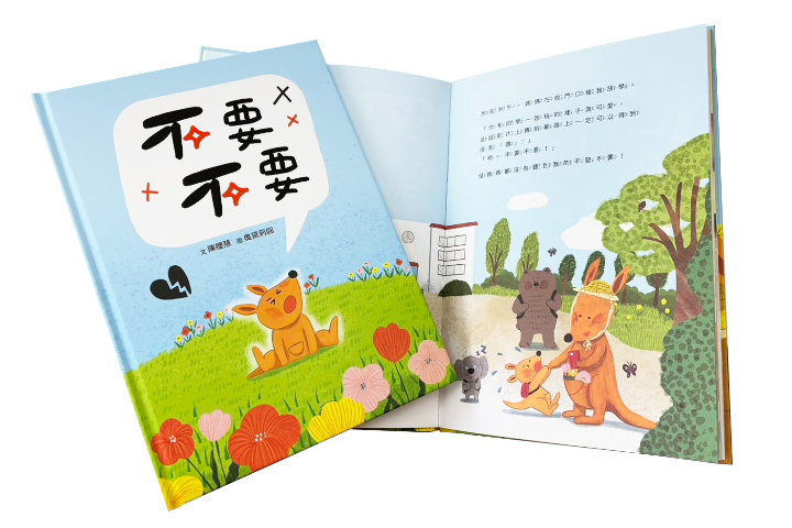 展翅最新出版的兒童人權繪本《不要不要》藉由小袋鼠的照片被分享到網路上,導致後續發生的一連串事件,教導孩子與家長培養正確數位素養的意識。(圖片來源:台灣展翅協會提供)