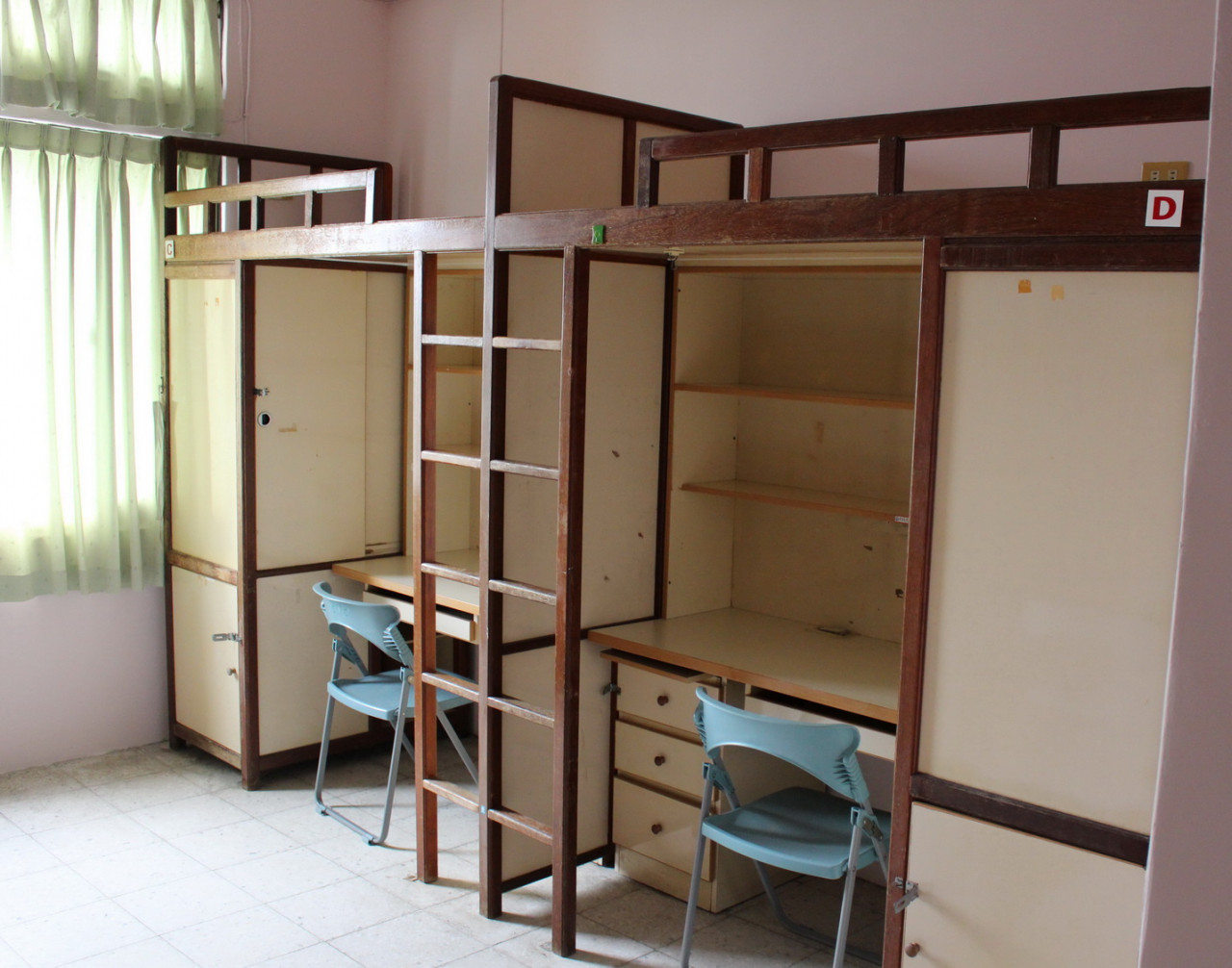 政治大學因為處在較為潮濕多雨的文山區,不僅牆面斑駁,連桌椅和床架也略顯老舊。編輯實際查詢政治大學官網發現,被網友們點名的為較老舊的自強5、6、7、8舍,每學期僅9057元,對比自強十舍最貴的單人房33150元,價差就超過2倍,也難怪舊宿舍被網友們點名數十年都一樣。