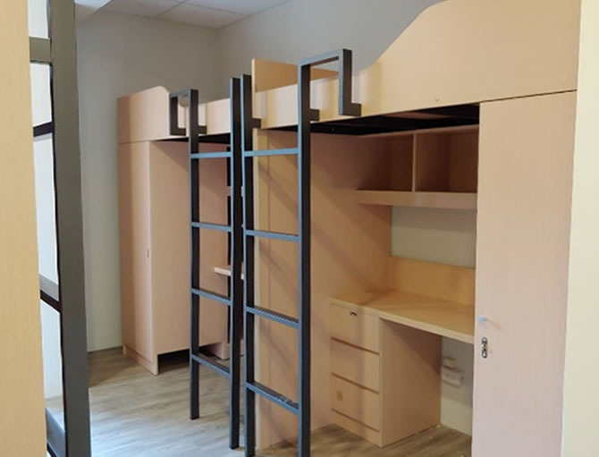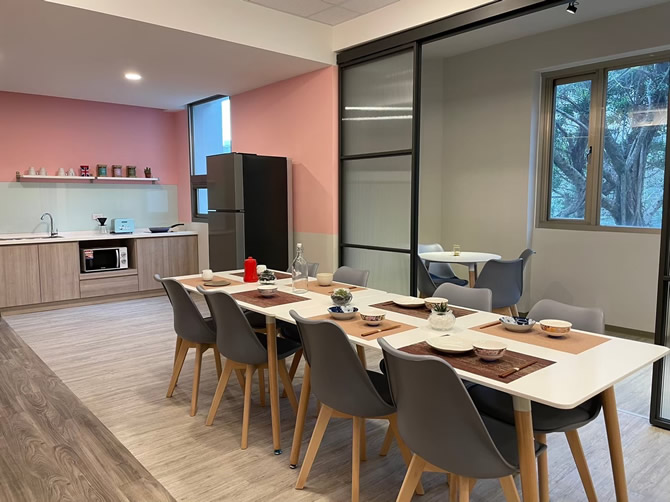 東海大學新建宿舍於2024年8月落成,不僅斥資5億元打造全新兩棟綠建築宿舍,更設計寬闊的廣場休憩區,從寢室到公共區域,包含共用廚房、交誼廳、健身活動空間等,進行完整的規畫。房型包含兩人套房每學期41360元和四人套房每學期25860元、27860元。