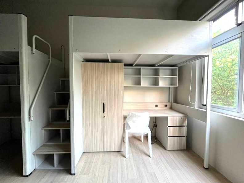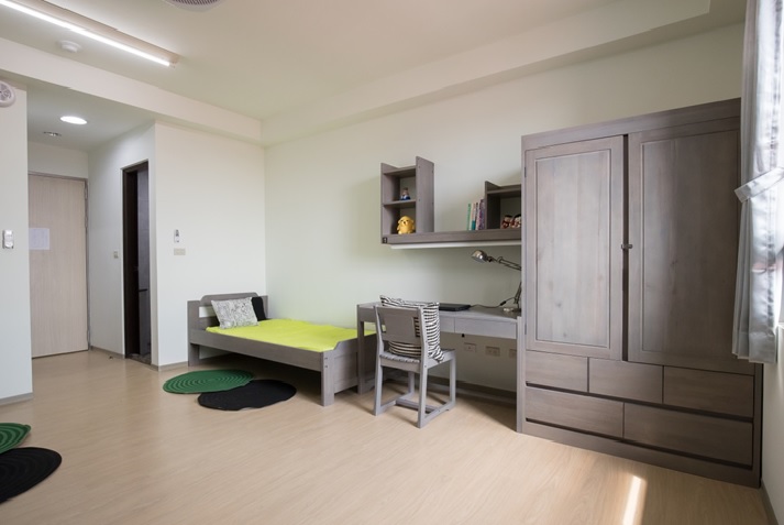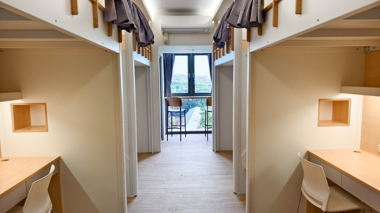 陽明交通大學2024年花費1億元整修學校宿舍,不僅將宿舍走廊翻修,室內也打造簡約住宿風格。除了寢室升級之外,健身房及公共空間也全面翻新,讓學生們在下課之餘也能有更多空間可以活動。以十一舍4人房來說,每學期16864元,相較於在外租房便宜許多。