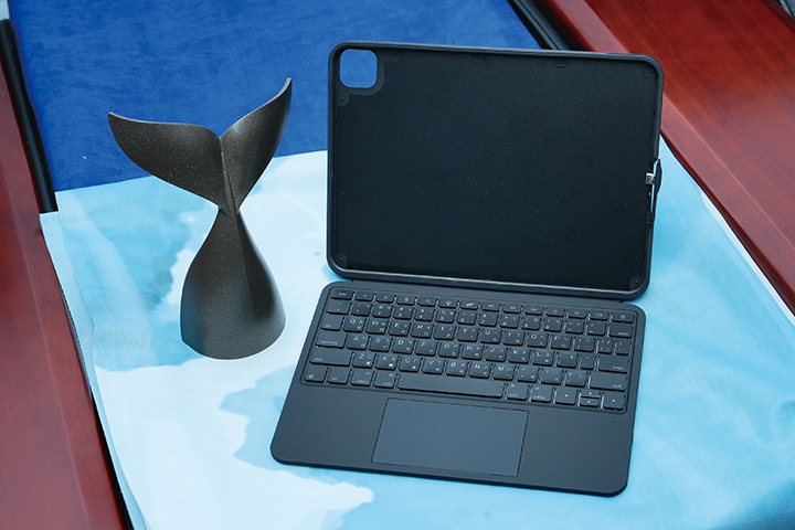 以豐溢擅長的保麗龍海廢為例,經改質處理後,其物性不僅能符合工業需求,甚至可進入電子產業,張福麟強調:「我們能把海廢保麗龍轉化為複合材料,應用在iPad的擴接鍵盤、消費性電子配件等領域。」這也意味著海廢材料已不只是環保象徵,而是真正具備國際競爭力的工業原料。