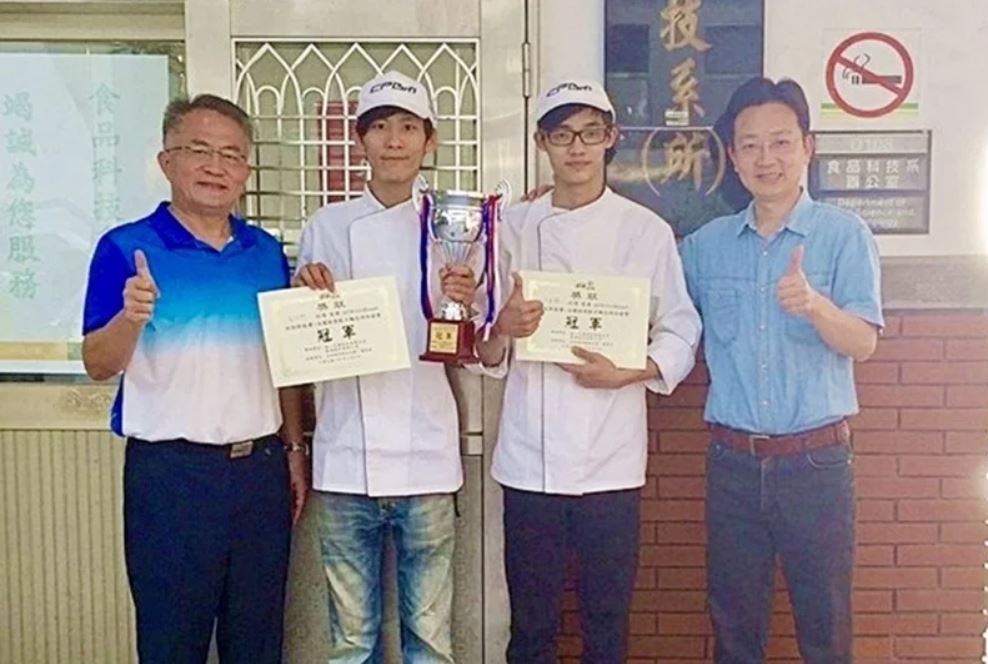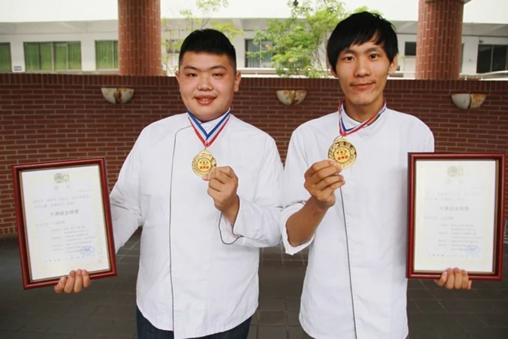 ▲蔡約群(右)就讀弘光科大食科系時奪「2016野創盃全國創意烘焙競賽」大專院校組冠軍。圖/弘光科大提供