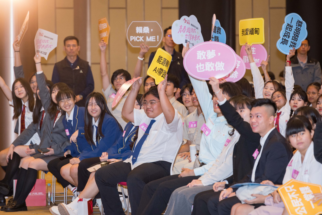 ▲ 論壇QA環節中,高中生們各自拿出自備的道具手牌,努力吸引總統目光,現場氣氛熱烈。圖/資料照,唐紹航攝影