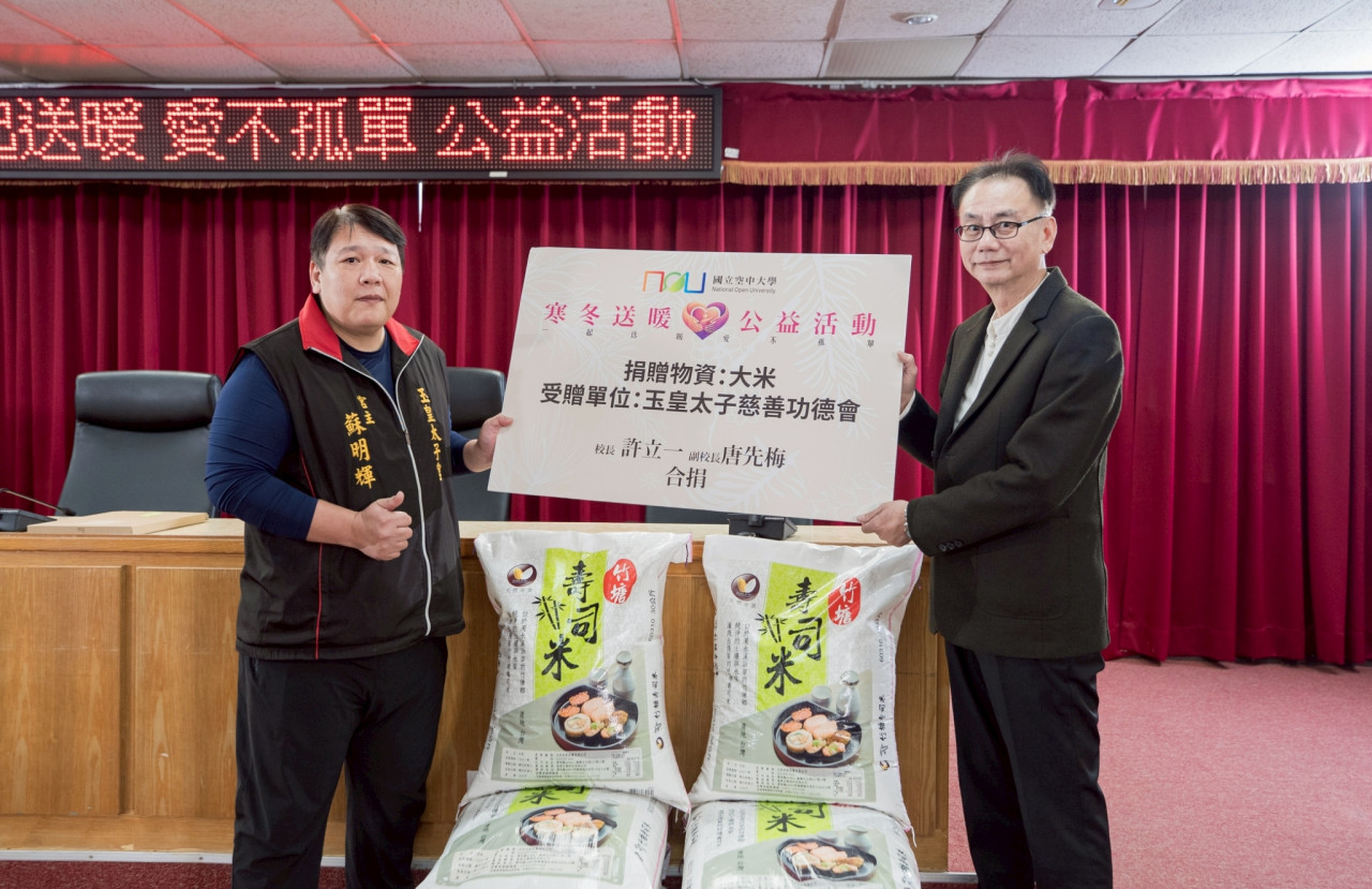 國立空中大學校本部紮根蘆洲數十載,早已與社區建立深厚的情誼。許立一校長自上任以來,便積極實踐大學社會責任(USR),致力於SDGs「消除貧窮」與「消除飢餓」的目標。許校長於典禮上感性地說:「國立空大在蘆洲成長,我們對這片土地有著深厚的責任感。感謝蘆洲區公所這三年來的協助,讓我們上下齊心募得的這份心意,能真正落實到那些法律邊緣、急需扶助的弱勢民眾手中,讓愛心不迷路。」