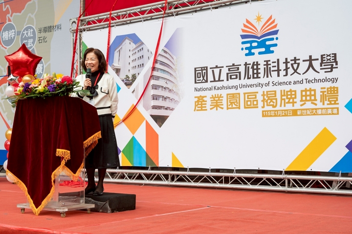 教育部技職司長楊玉惠受邀見證高科大產業園區揭牌典禮,特地前來高雄出席活動。楊玉惠表示,大專校院的轉型整併是整個社會結構改變下的必然過程,空間活化能夠在「公益」的最大前提下產生新的運用價值,是值得支持並且期待的。