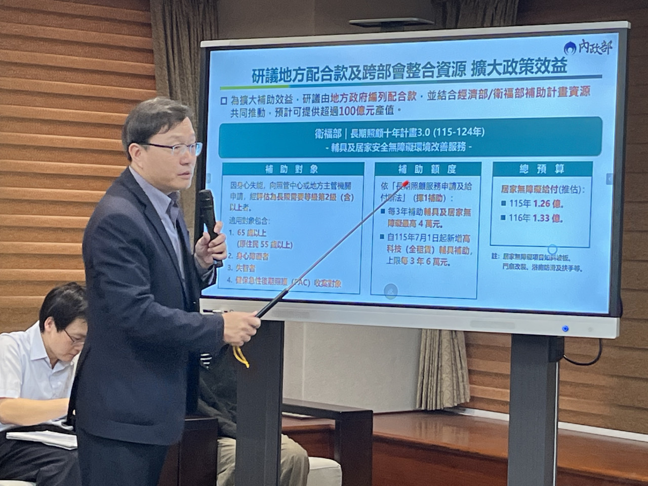 蔡長展也指出,「老宅延壽計畫」中,內政部直接補助民眾的預算是46億元,另外還會有地方政府的配合款約為15%;在每件個案中,中央補助是65%,另有35%是民眾自行負擔。