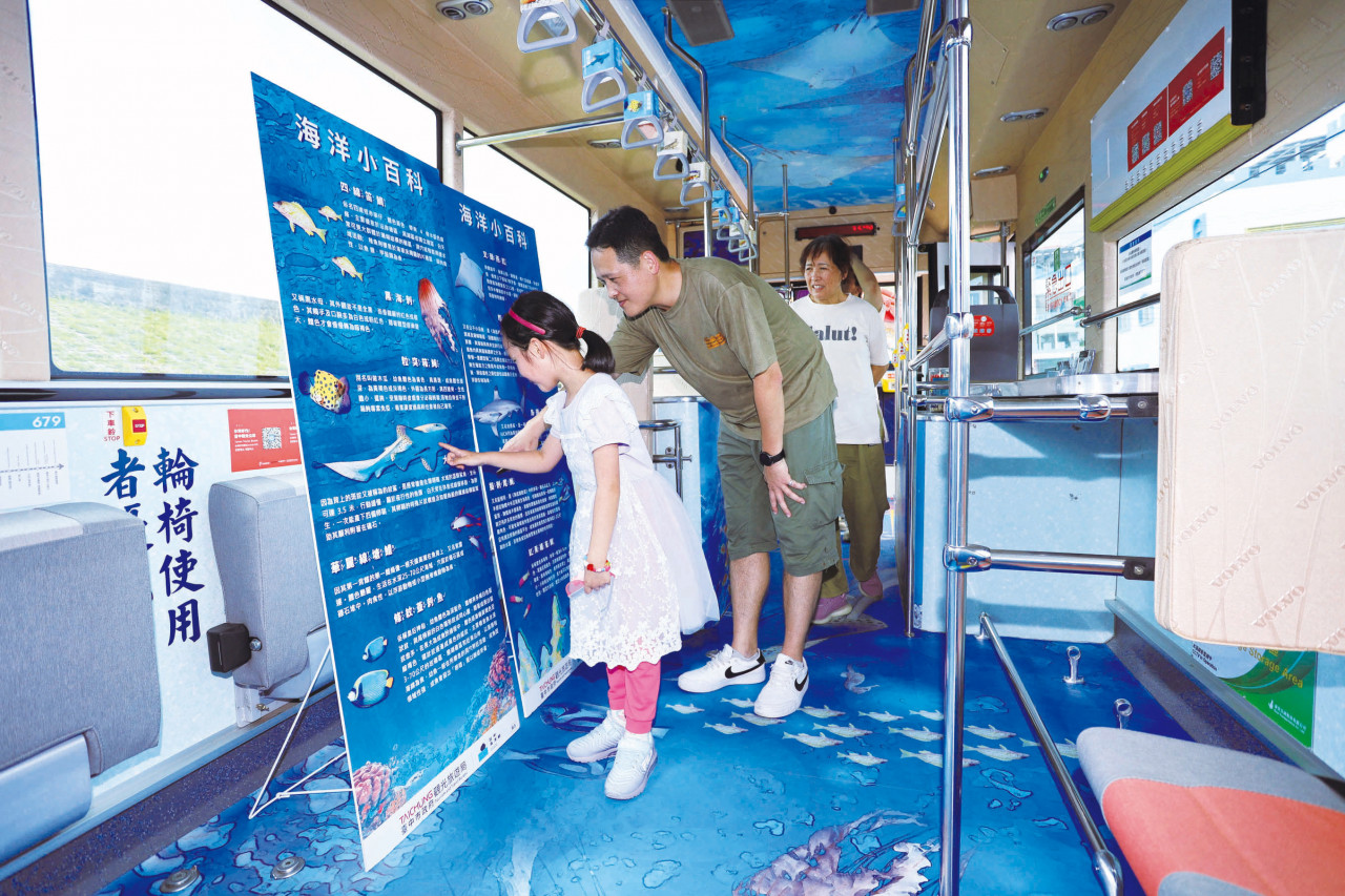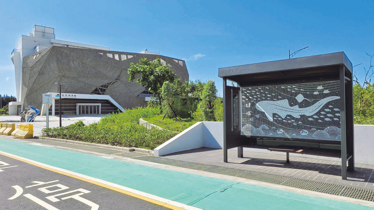 「679台中活力海洋線」行經台中海洋館,其主題候車亭別具特色,「海洋活力」主題車廂更藉由塗裝引領乘客認識海洋生物,重視海洋生態保育。