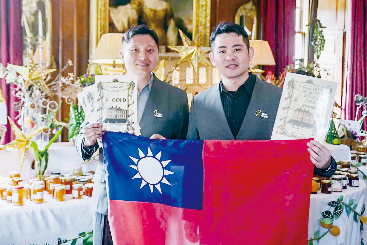 「世界柑橘類果醬大賽」20週年,台灣果醬職人表現亮眼。來自台中的「果食男子」鍾文平與鄧聖強,以「柴焙龍眼琴酒葡萄柚」果醬一舉拿下「搭配鹹食」雙金獎,更在「有趣食材」及「含酒果醬」兩類別雙雙奪金,風光抱回「三冠王」榮譽,為台灣果醬產業寫下新里程碑。